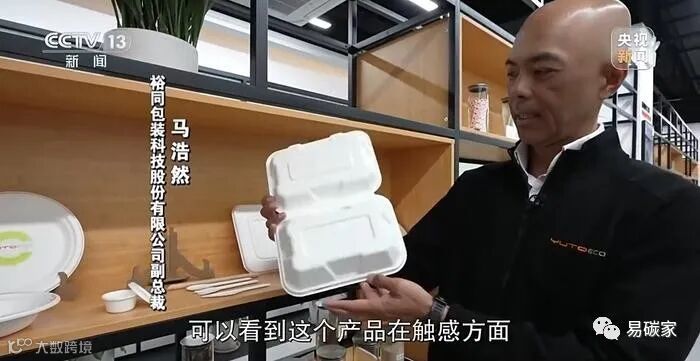 裕同包装科技股份有限公司副总裁马浩然:可以看到这个产品在触感方面,在它的表面基本跟塑料是一样的。但是其实这个产品我们的原材料是用纯天然的材料来做的,其中包括甘蔗渣,还有竹粉。