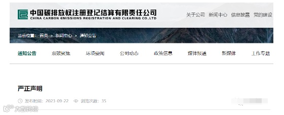 近日,我公司发现,有不法分子实施伪造我公司印章并出具伪造的《碳排放权查询证明》文件的违法犯罪行为。为维护碳市场的正常秩序、保护我公司声誉及利益,现严正声明如下: