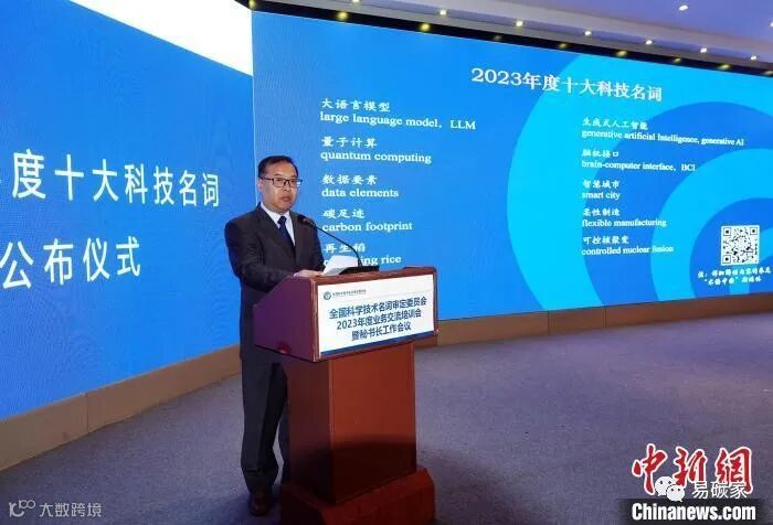 中新网北京12月26日电 (记者 孙自法)由全国科学技术名词审定委员会(全国科技名词委)联合多家机构发起主办的2023年度十大科技名词盘点评选活动12月26日在北京揭晓发布,大语言模型、生成式人工智能、量子计算、脑机接口、数据要素、智慧城市、碳足迹、柔性制造、再生稻、可控核聚变等10个科技名词入选。