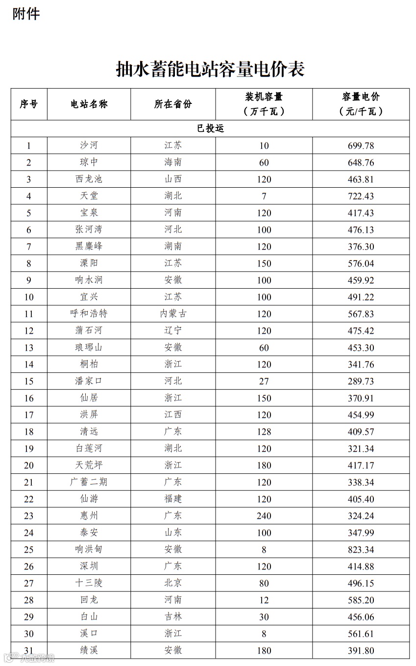 一、按照《国家发展改革委关于进一步完善抽水蓄能价格形成机制的意见》(发改价格﹝2021﹞633号)及有关规定,核定在运及2025年底前拟投运的48座抽水蓄能电站容量电价,具体见附件。