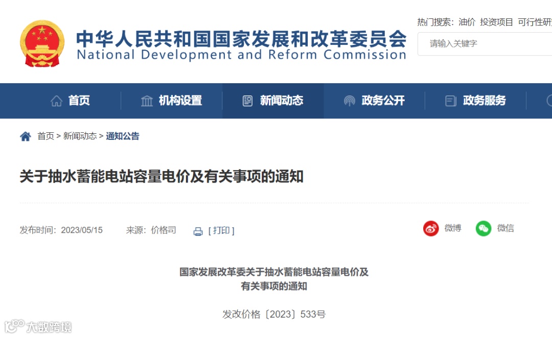 5月15日,国家发展改革委发布《关于抽水蓄能电站容量电价及有关事项的通知》《关于第三监管周期省级电网输配电价及有关事项的通知》《国家发展改革委关于第三监管周期区域电网输电价格及有关事项的通知》。文件均自2023年6月1日起执行。(详细原文见文末)