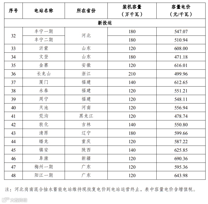此次国家发改委核定在运及2025年底前拟投运的48座抽水蓄能电站容量电价。