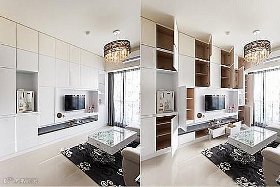 编辑建议:购置内嵌式或者内藏式的收纳家具,避免过多物品收纳在外阻碍视觉,墙上搁板收纳不宜过多,一面墙足以。