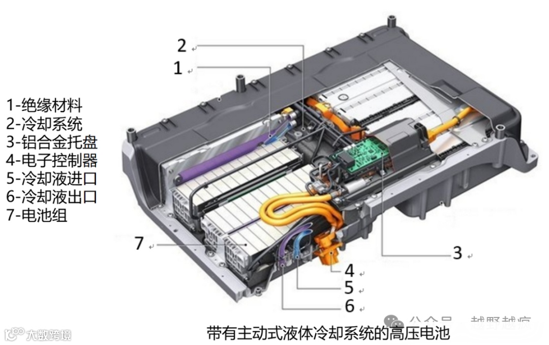 液体冷却法(如下图所示)以液体为介质的传热,需在动力电池组与液体介质之间建立传热通道,比如水套,以对流和导热两种形式进行问接式加热和冷却,传热介质可以采用水、乙二矽,甚至制冷剂,也有把动力电池组沉没在电介质的液体中直接传热,但必须采用绝缘措施以免发生短路。