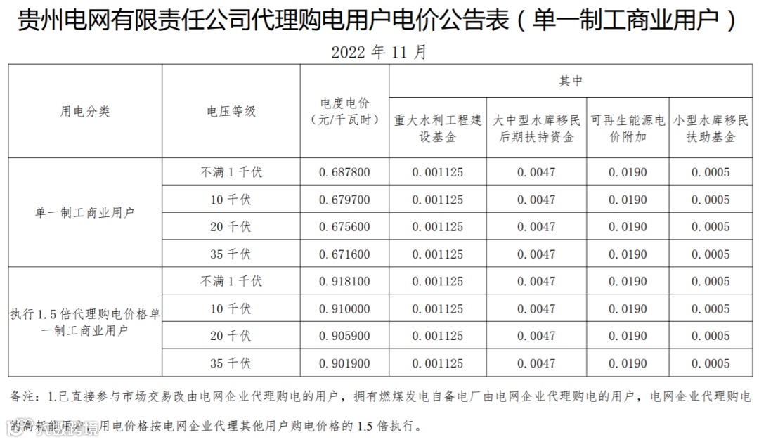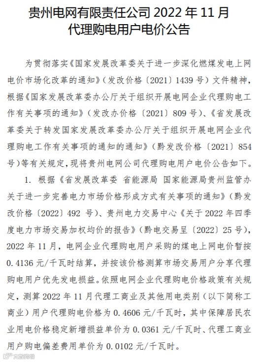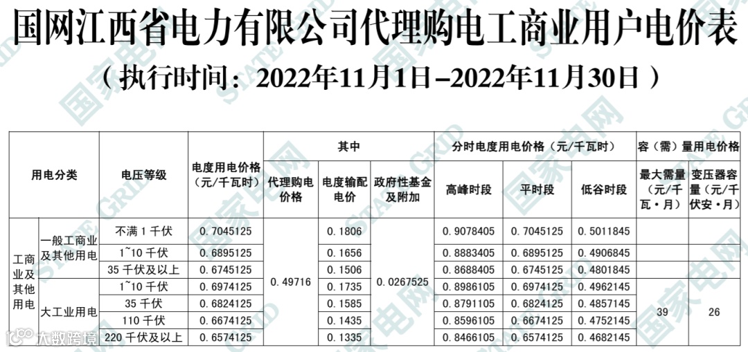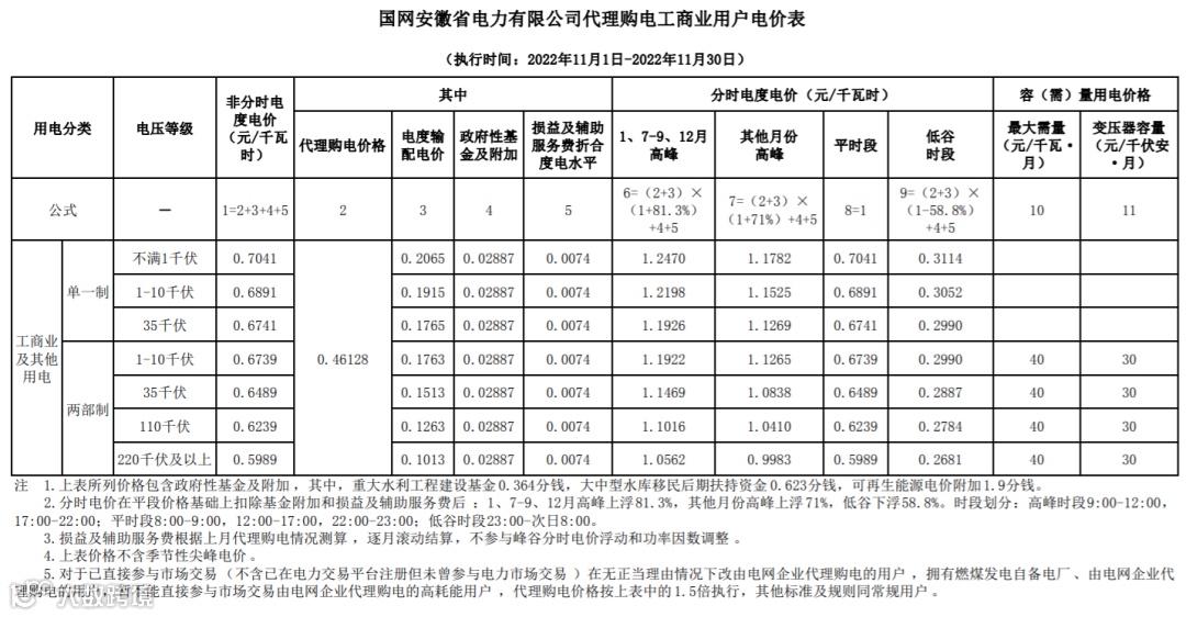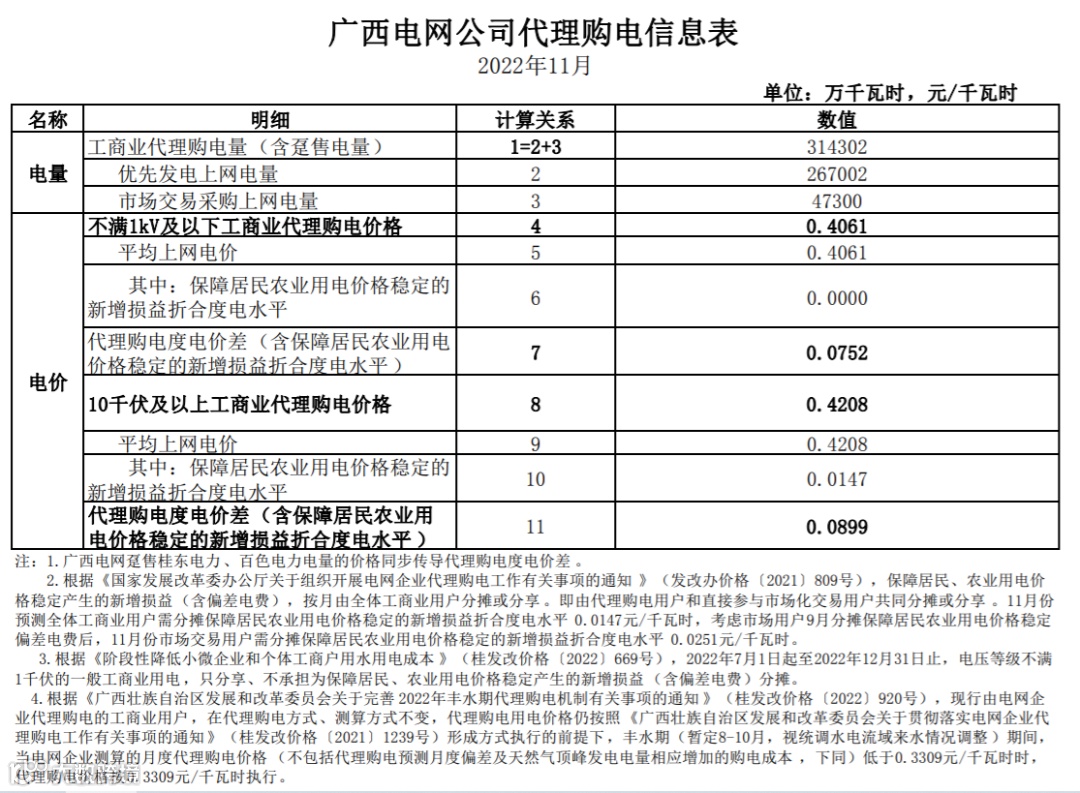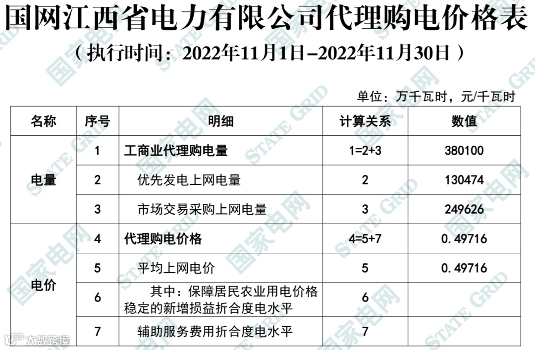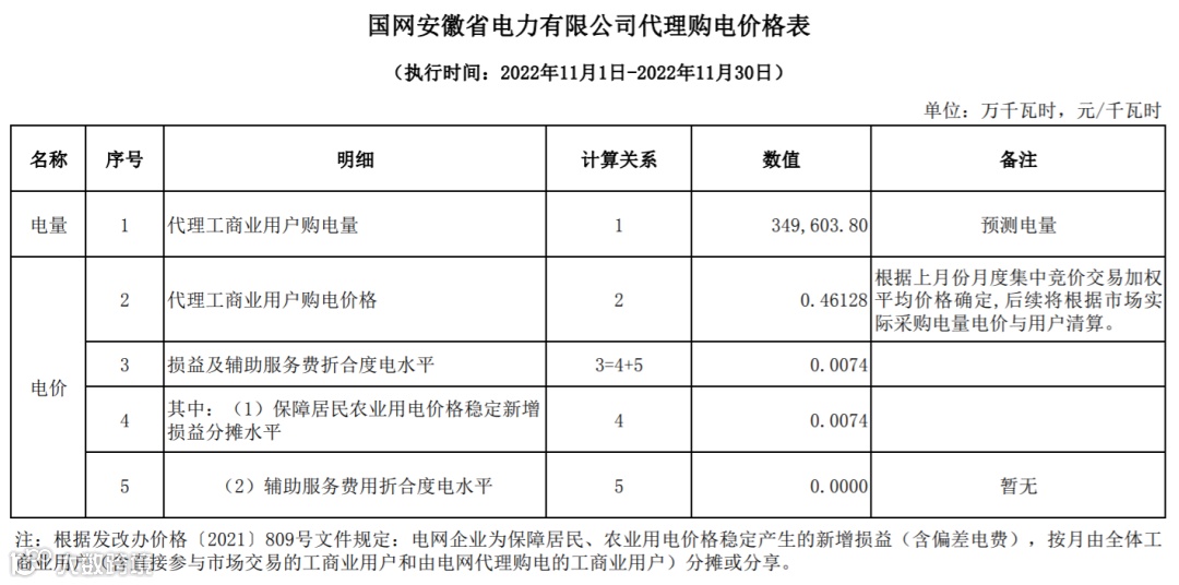 以下附全国各省11月代理购电电价详情: