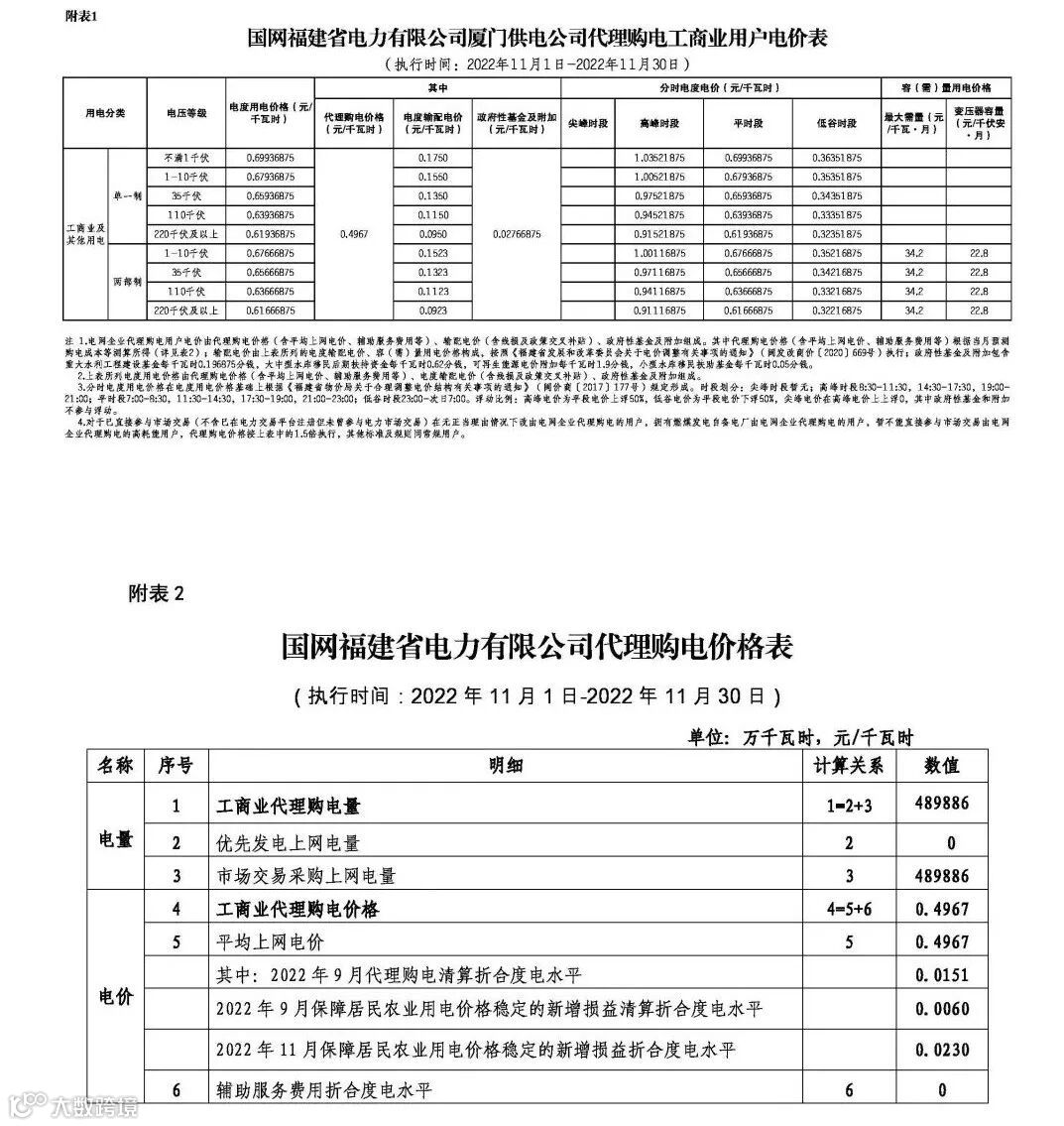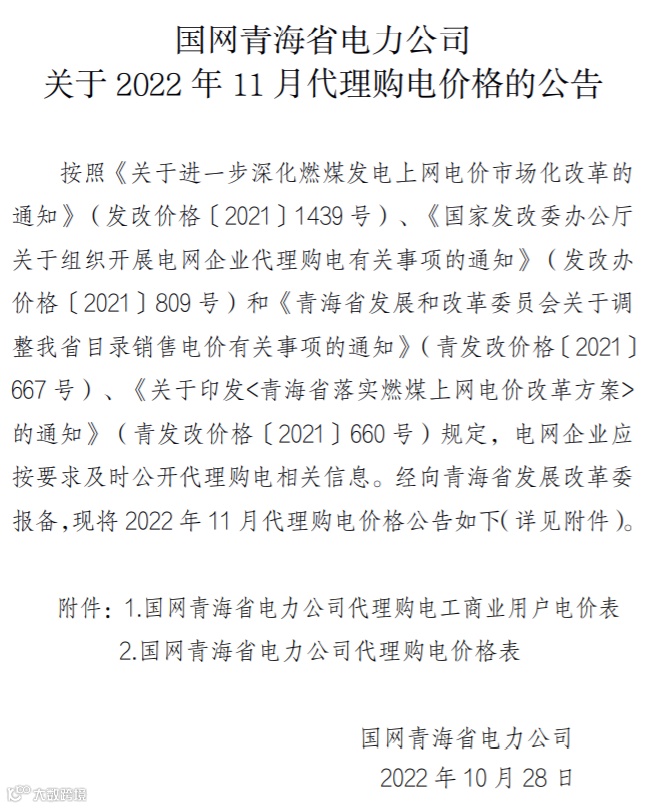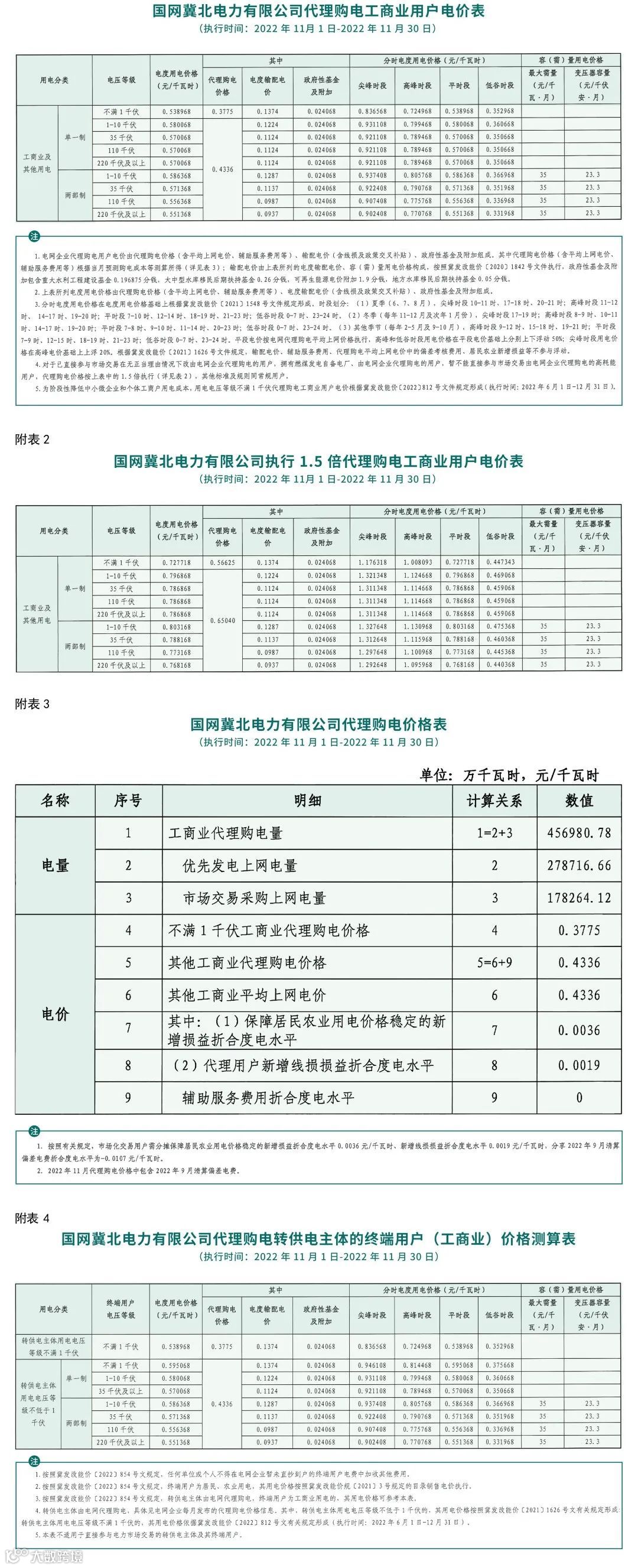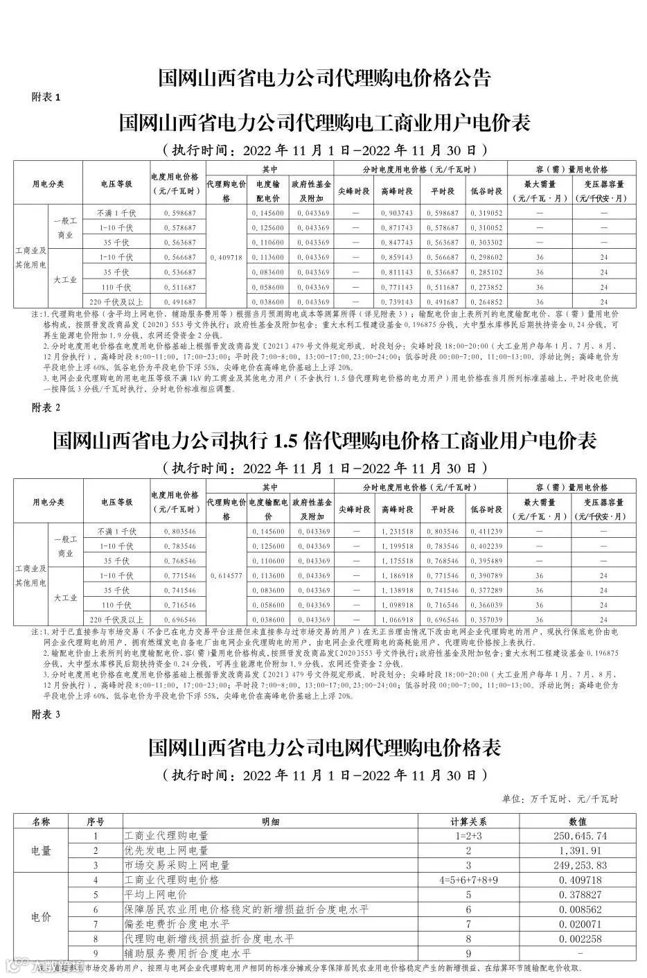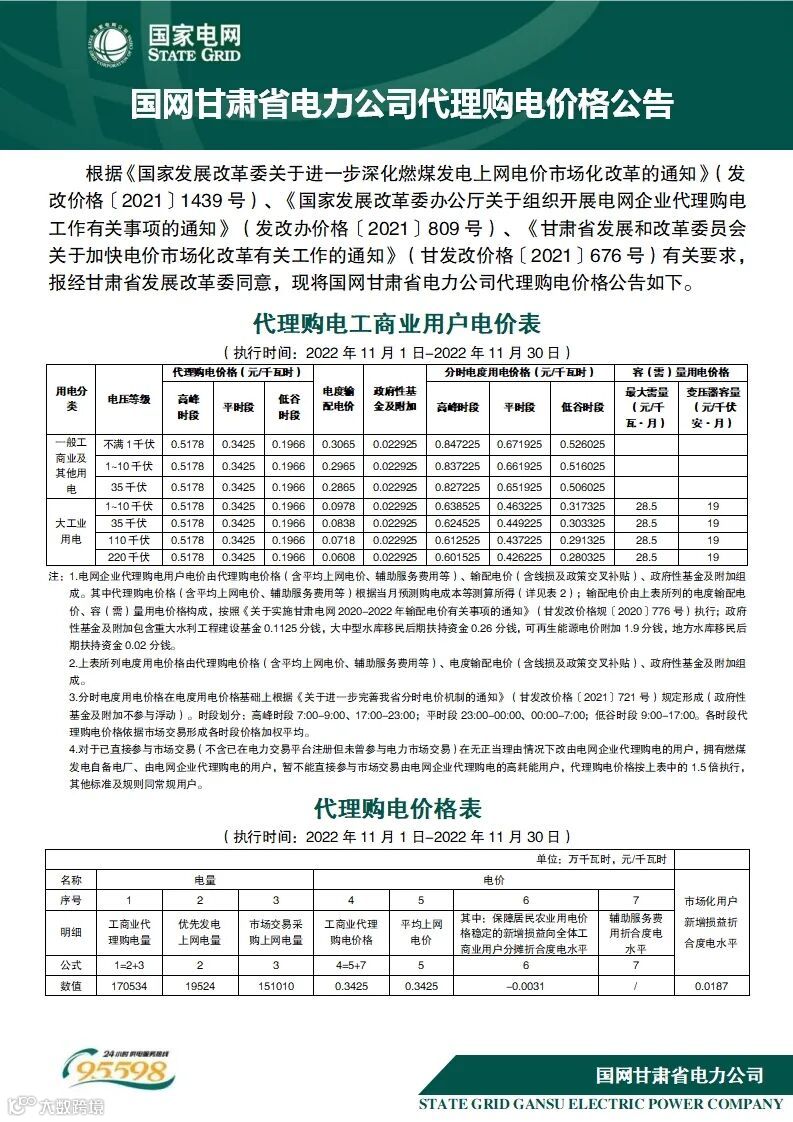以下附全国各省11月代理购电电价详情:
