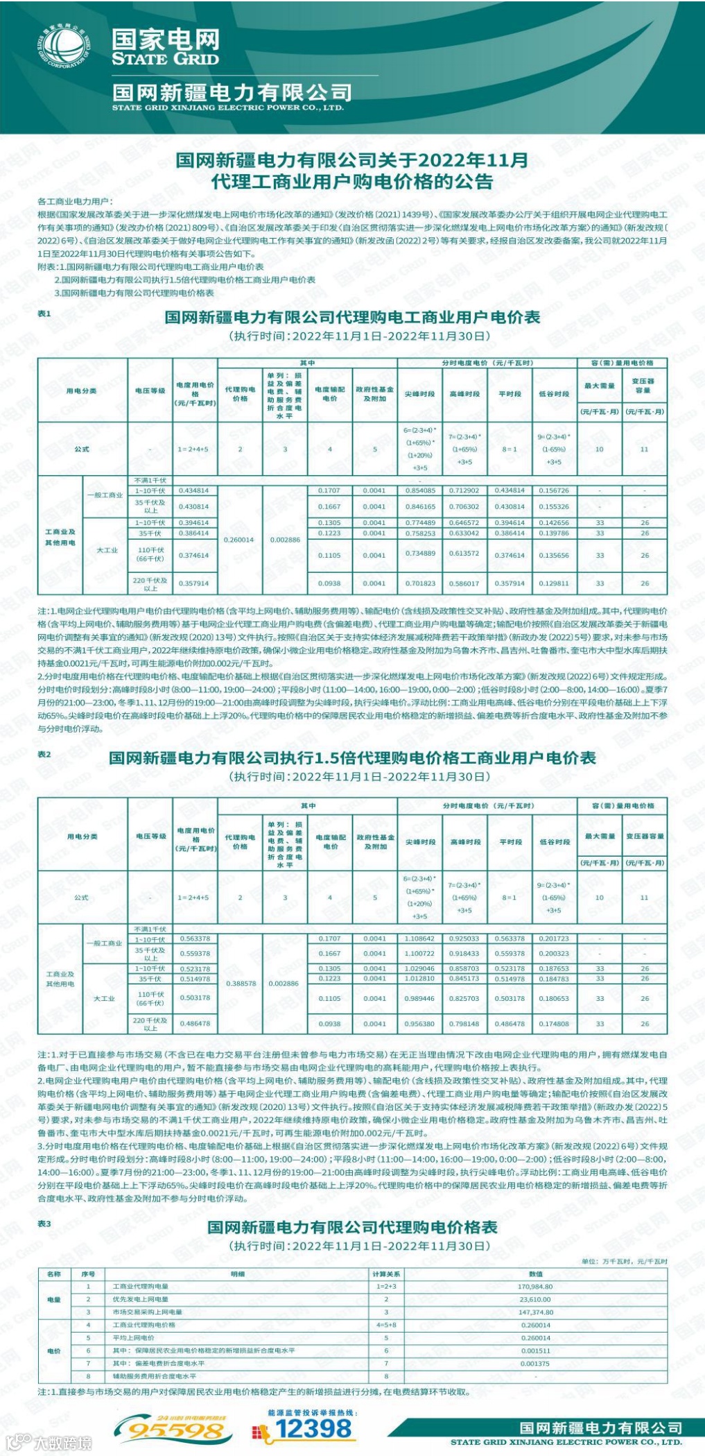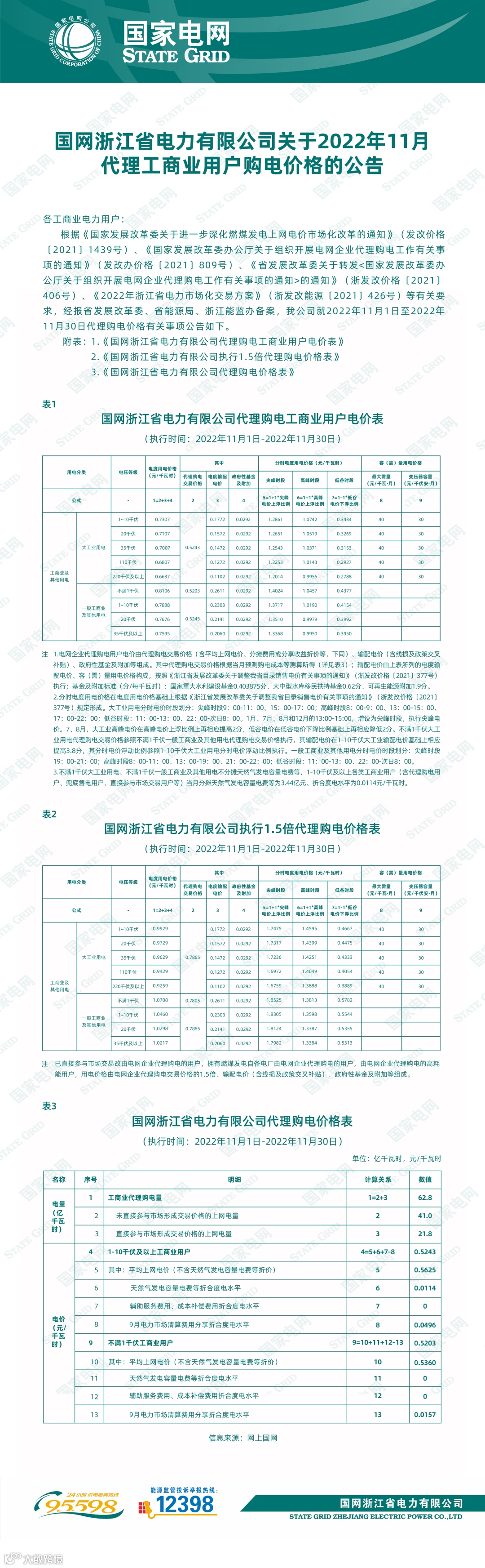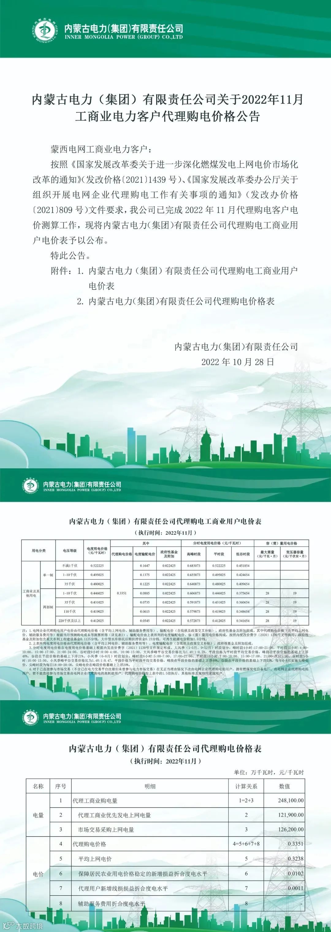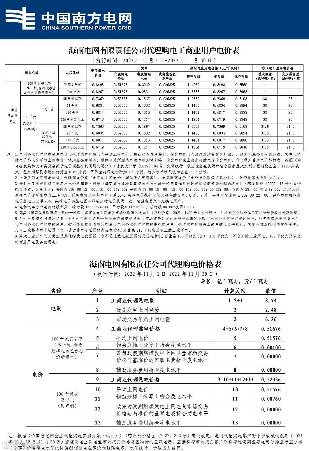 以下附全国各省11月代理购电电价详情: