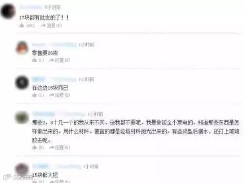 有的网友甚至爆出“内幕”,批发价10多块就能拿到这种水壶,还有的说,市面上二三十元的水壶,都是边角料抛光出来的: