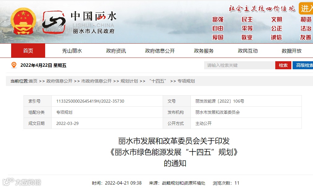 发布《丽水市绿色能源发展“十四五”规划》。文件提出了总体目标,并且对“十四五”重大项目予以了明确。