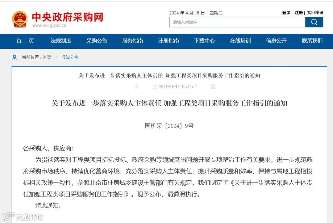 关于发布进一步落实采购人主体责任 加强工程类项目采购服务工作指引的通知