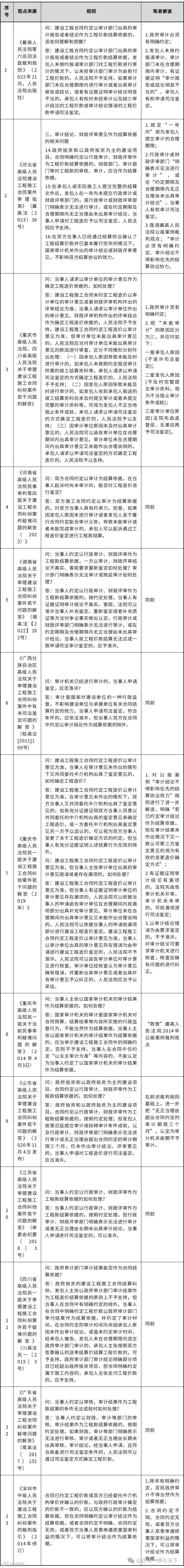 2.对司法裁判规则梳理的编纂体例参见“张国印建设工程号”公众号文章:《各地法院:审理工程审计纠纷指导意见与裁判规则》,但对应的“解读”部分,系本文作者个人观点。