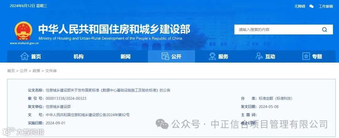 住建部发布国家标准《数据中心基础设施施工及验收标准》自2024年9月1日起实施
