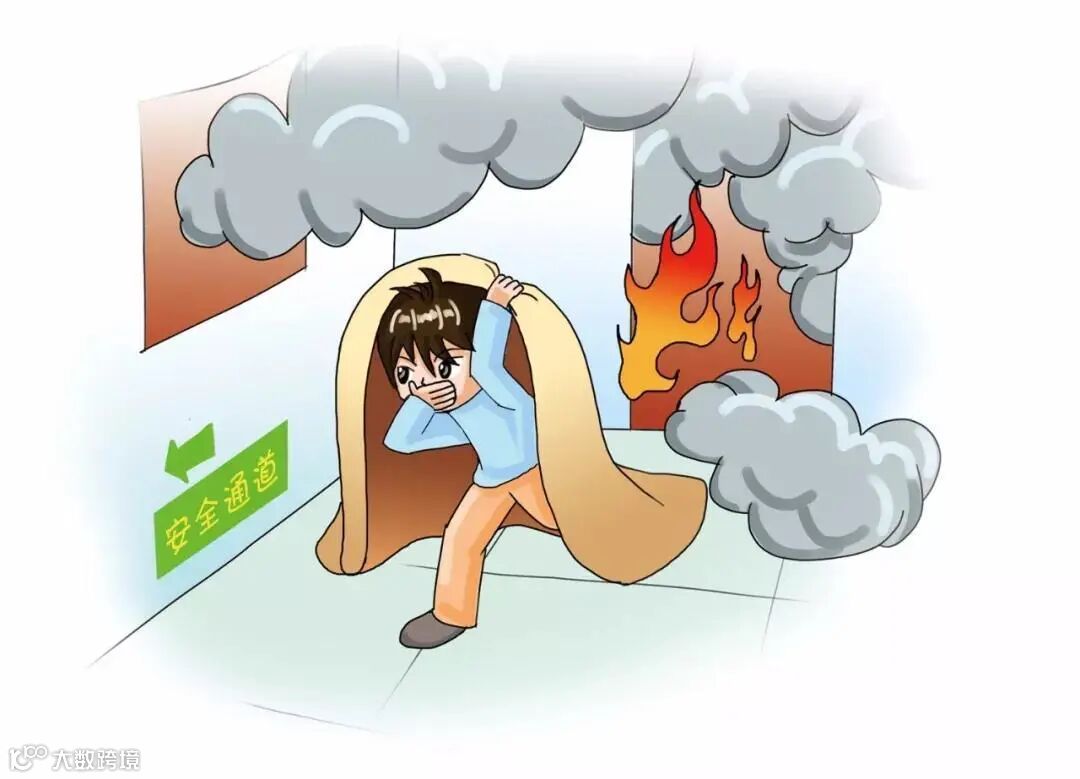 遇到火灾,第一时间拨打119报警。遇到火灾现场必须穿过浓烟逃生时,请尽量用浸湿的衣物保护头部和身体,捂住口鼻,弯腰低姿前行。如遇大火封门无法逃生时,可用浸湿的毛巾衣物堵塞门缝,发出求救信号,等待救援。