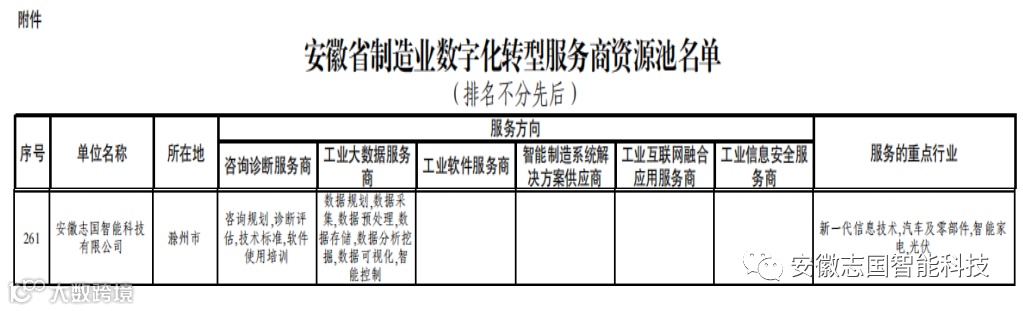 喜报!安徽志国智能科技有限公司已入库安徽省制造业数字化转型服务商资源池