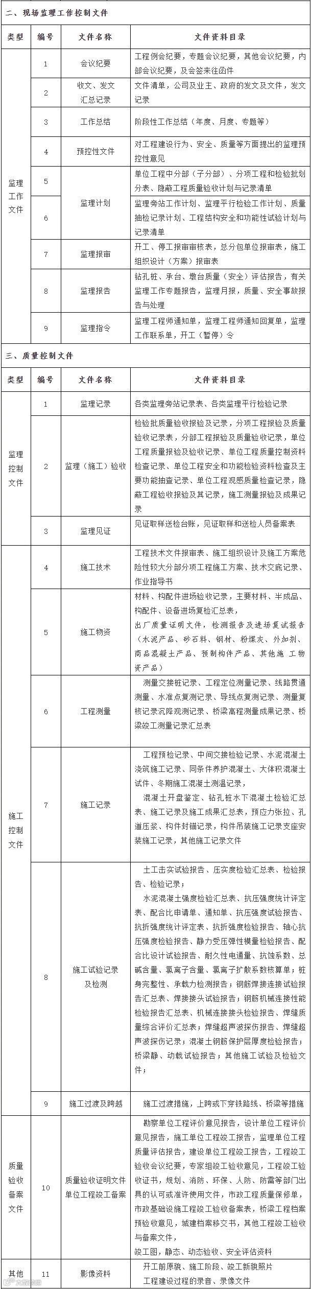 现场监理归档资料清单