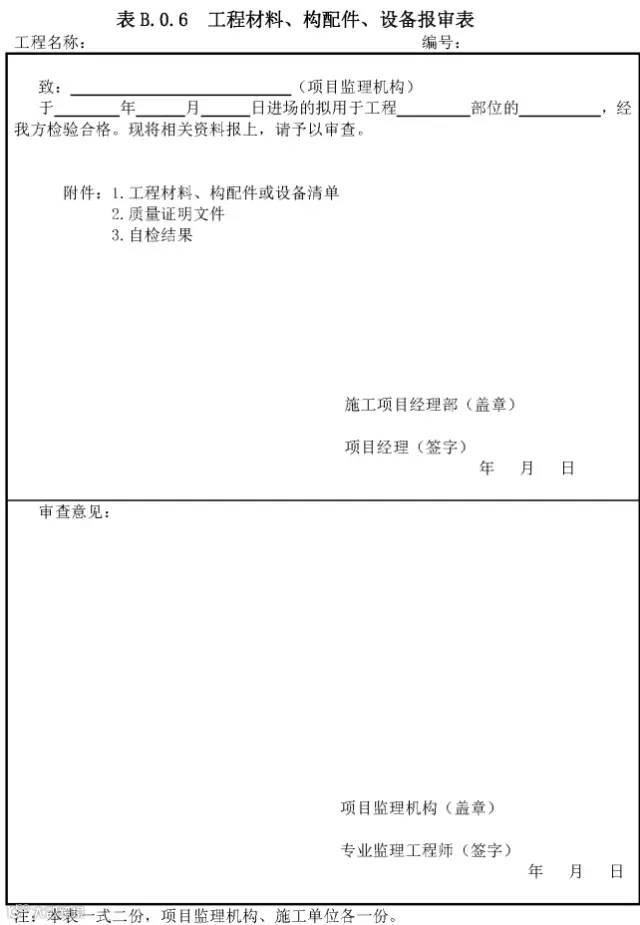 (14)表 B.0.6 工程材料、构配件或设备报审表