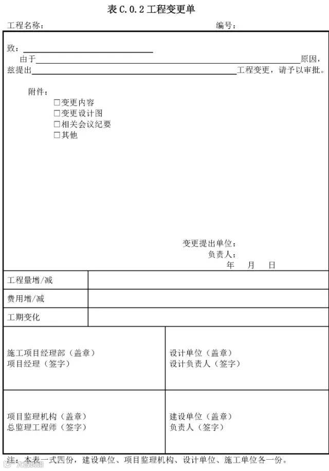表C.0.2工程变更单