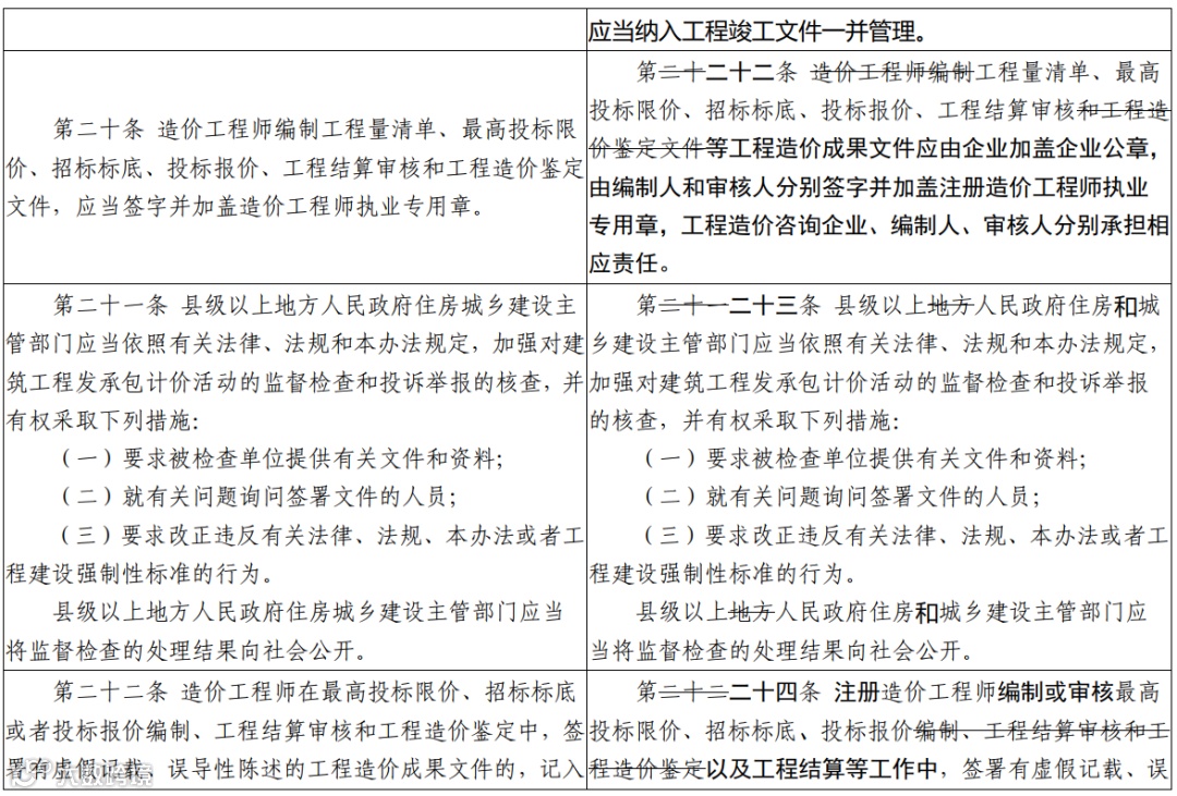 此外,关于信用管理、行业自律、工程造价成果文件的具体要求、造价工程师责任落实等内容拟在《工程造价咨询业管理办法》修订工作中予以考虑,本办法不再赘述。