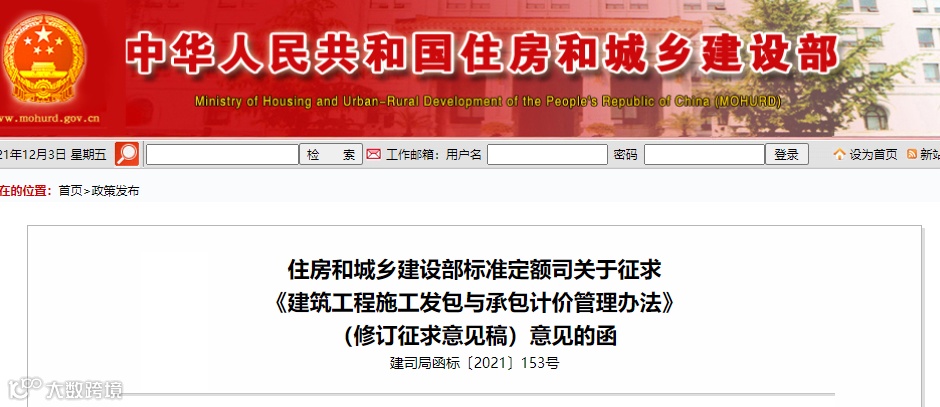住建部对《建筑工程施工发包与承包计价管理办法》16号部令进行了修订。刚刚在官网发布《建筑工程施工发包与承包计价管理办法》(修订征求意见稿)。