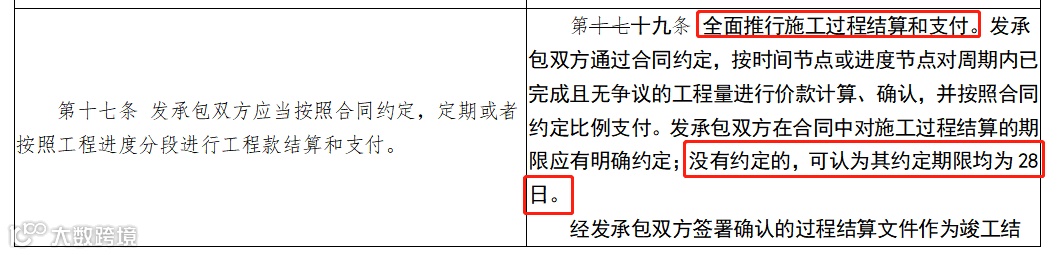 为贯彻落实国务院决策部署,进一步做好清理政府部门和国有企业拖欠民营企业中小企业账款工作,增加推行建筑工程施工过程结算的条款。明确过程结算的内容,规定过程结算开展的基本流程和时限要求,提出不得以未完成政府审计作为延期结算理由。