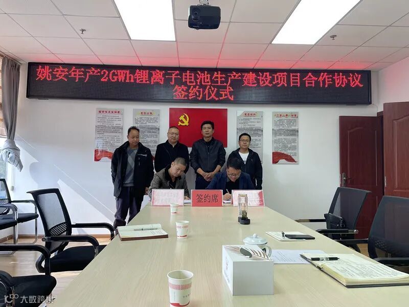 为加快姚安县新能源开发利用,促进姚安县绿色能源产业发展。2021年11月26日下午,姚安县与深圳市远信储能技术有限公司签订了《姚安县年产2GWh锂离子电池生产线建设项目》合作框架协议,项目占地面积108亩,总投资20亿元,建设期限两年,分两期进行锂离子电池生产建设。