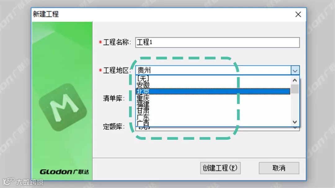 所以在使用软件的时候,正确选择对应的地区十分必要。新建工程时,可以选择工程所在地区、现行清单规范、定额,如下图所示☟