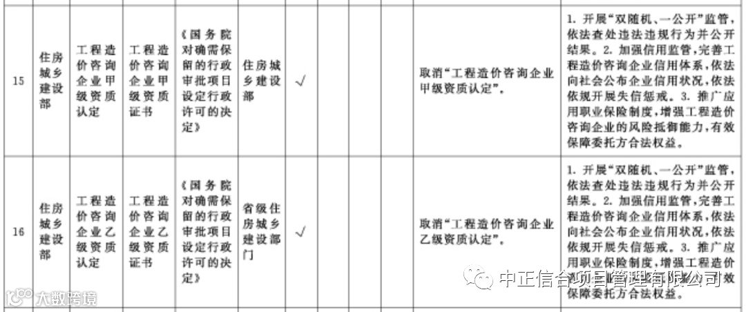 取消“工程造价咨询企业乙级资质认定”;