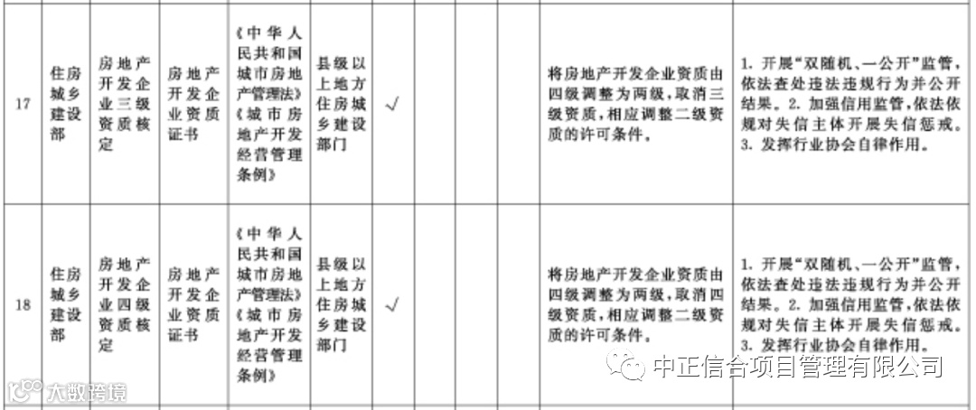 将房地产开发企业资质由四级调整为两级,取消三级、四级资质,相应调整二级资质的许可条件;