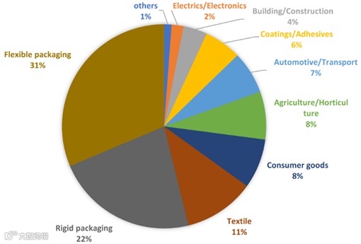 图3:电子产品应用只占生物塑料消费量的一小部分(图片:MDPI聚合物))
