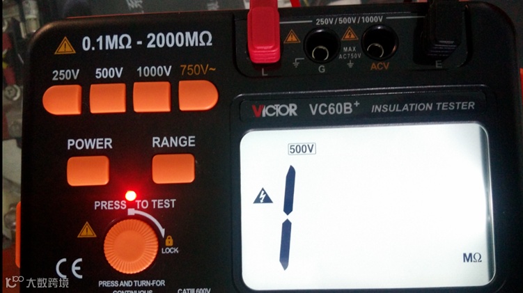⑤选择合适的量程,连接测试线,按下测试键后读取其绝缘电阻值