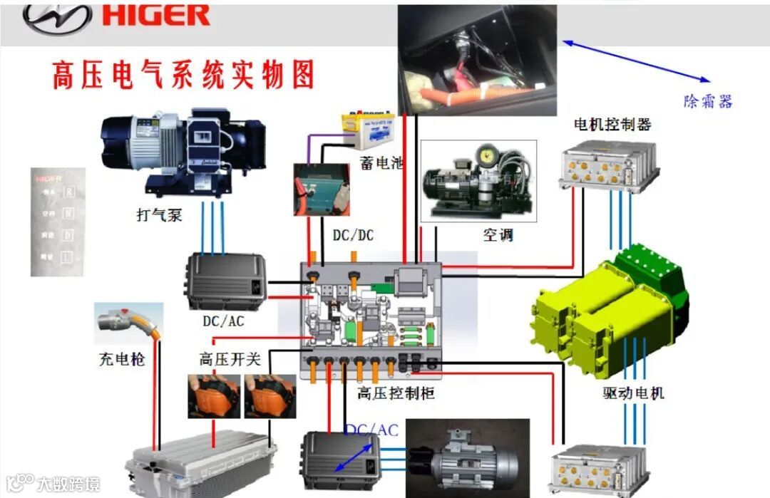 其次,纯电动车辆除普通的电源、灯光、信号、雨括、乘客门、空调