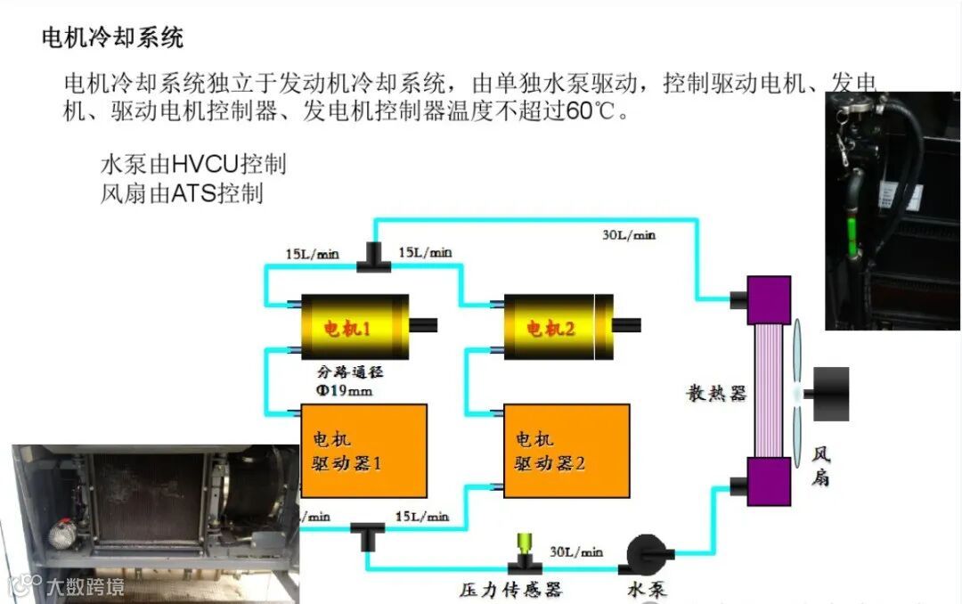 在电机工作的过程中,电机定子、控制器采取水冷的降温措施,系统通