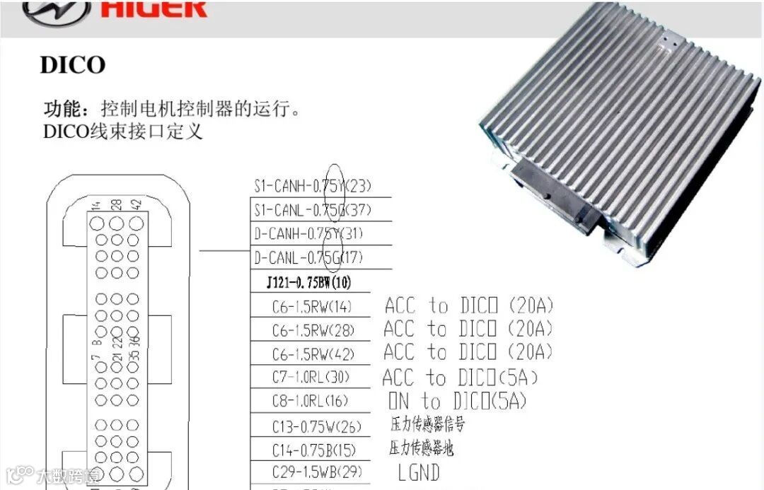 功能:整车控制器简称HVCU,用于协调混合动力系统各部件工作,传递