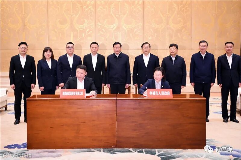 1月28日,孝感市政府在汉与恒信汽车集团股份有限公司签署楚能新能源锂电池产业园项目投资协议。省委书记应勇,省委副书记、省长王忠林,副省长曹广晶见证签约。该项目总投资450亿元,规划总用地约3335亩。项目计划分两期建设,一期、二期分别建设60GWh、40GWh产能。