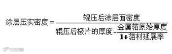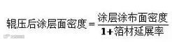 而考虑到极片辊压时,金属箔材存在延展,辊压后涂层的面密度通过下式计算。