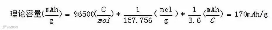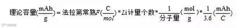 电极材料理论容量,即假定材料中锂离子全部参与电化学反应所能够提供的容量,其值通过下式计算: