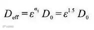 在多孔电极中,有效扩散率、传导率等输运物性的关系可用下式表示: