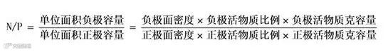 N/P要大于1.0,一般1.04~1.20,这主要是处于安全设计,防止负极侧锂离子无接受源而析出,设计时要考虑工序能力,如涂布偏差。但是,N/P过大时,电池不可逆容量损失,导致电池容量偏低,电池