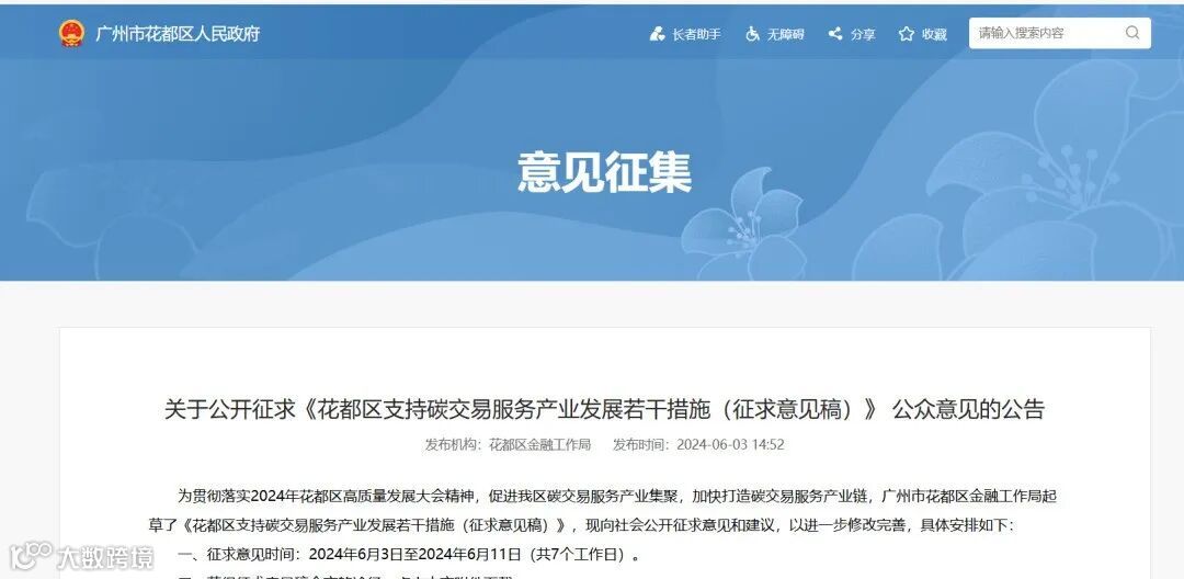 关于公开征求《花都区支持碳交易服务产业发展若干措施(征求意见稿)》公众意见的公告