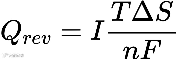 其中R为电池内阻。焦耳热与电流的平方成正比,因此快充时电流增大,不可逆热会显著增加。可逆热Qrev来源于电化学反应中的熵变,也被称为熵热,其表达式为: