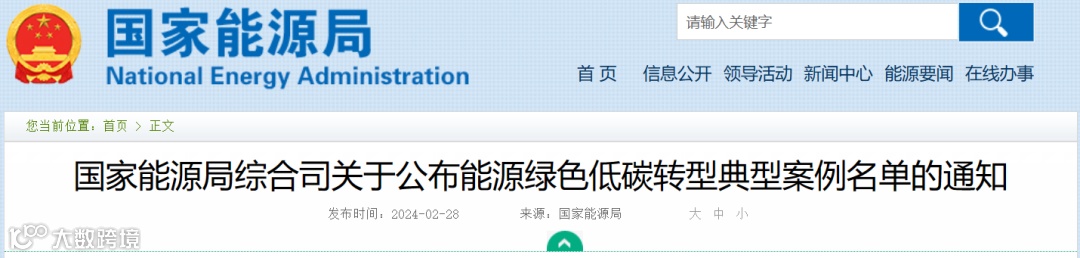 2月28日,国家能源局发布《关于公布能源绿色低碳转型典型案例名单的通知》。