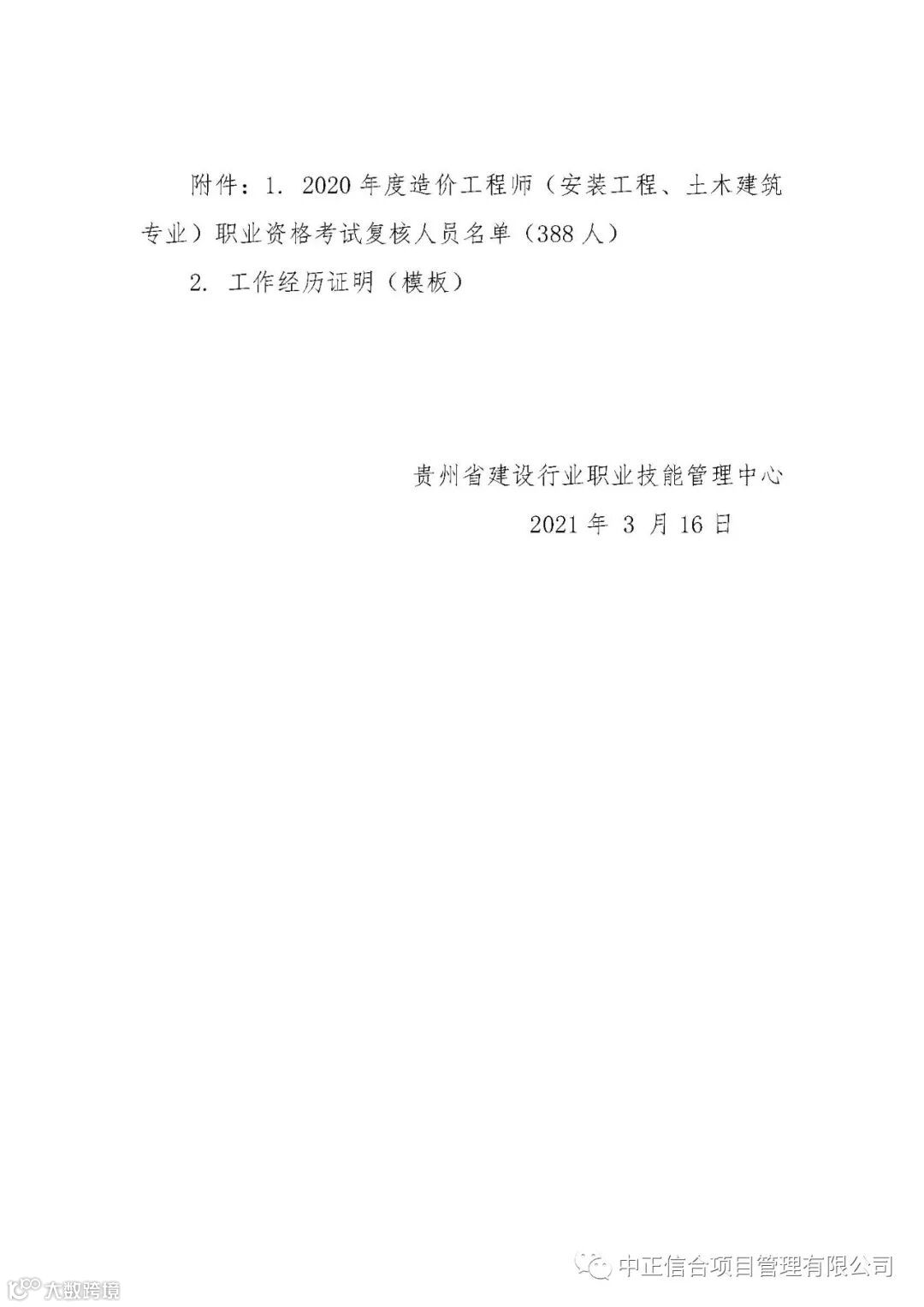 关于开展2020年度一级造价工程师(安装工程、土木建筑专业)职业资格考试考后资格复核工作的通知