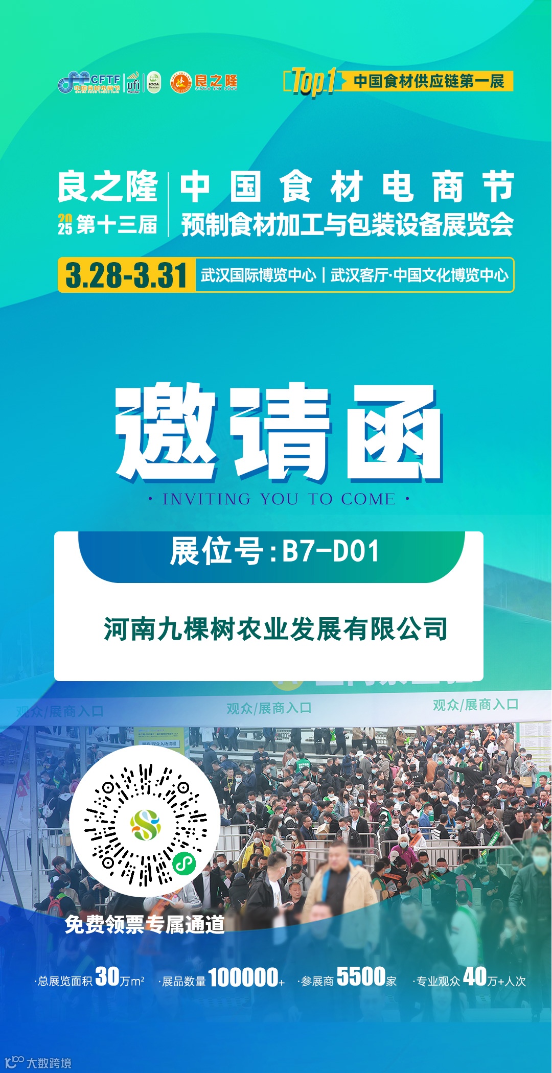 期待在展会现场与您相逢,让我们一同在这充满希望的春天,见证九棵树的闪耀时刻,携手描绘食材行业的美好未来。如有任何疑问,欢迎随时联系我们,联系电话:400-100-1609。