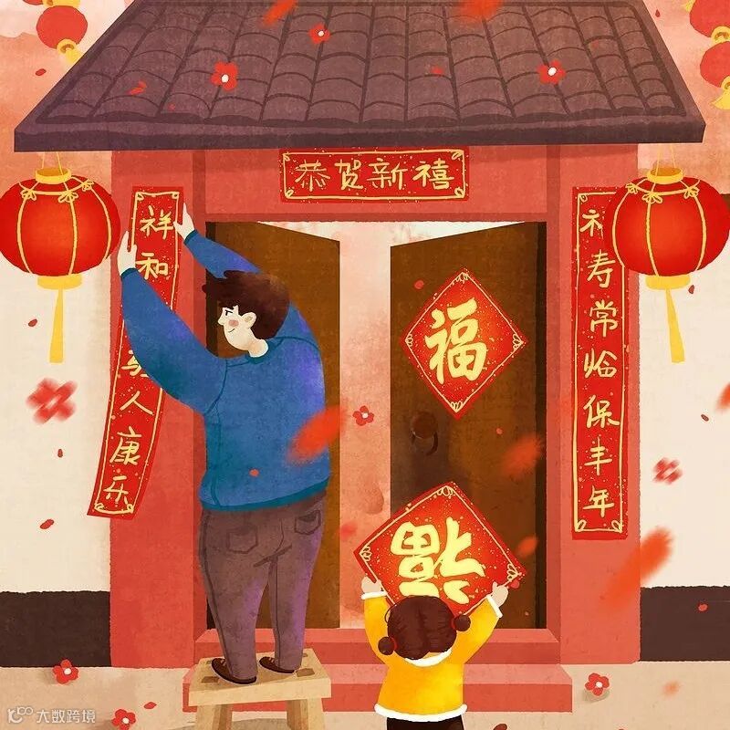 春节前夕,人们会在门上贴上对联,这是用红纸写成的对联,通常包含祝福和吉祥的话语。寓意着迎接新年的吉祥和幸福。九棵树的春联也都已经贴上啦!