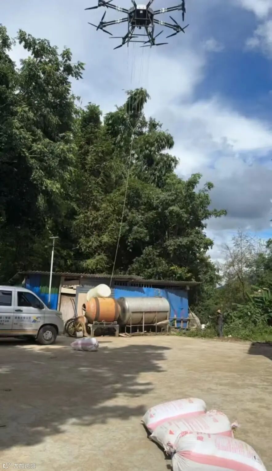 大载重无人机吊运平台不仅适应元阳复杂的梯田地形,更具备强大的负载能力和全天候响应能力,无论是农产品、肥料、工具,还是应急物资,都能快速吊运到位,彻底突破交通限制。