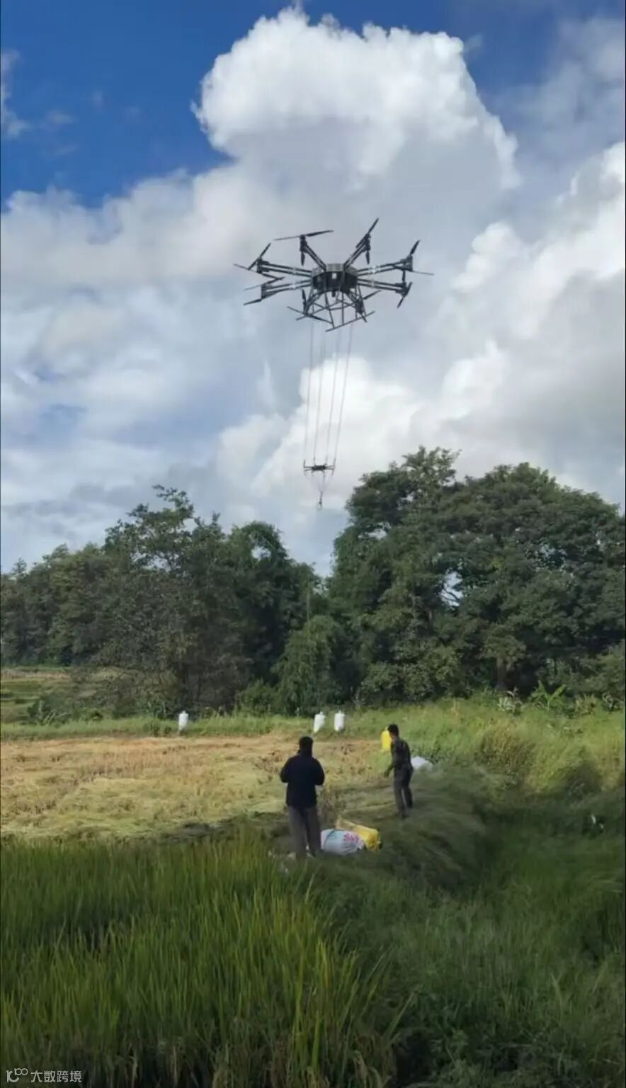 随着一袋袋稻谷被无人机平稳吊起、精准运往农户家中,也意味着飞集物流“低空+智慧农业”创新应用场景成功落地——这不仅仅是一次技术的落地,更是农业智慧化转型与乡村振兴道路上坚实的一步。大载重无人机吊运平台精准、安全、高效地完成物资的空中运输与投送任务,无论是应对抢险救灾、医疗急救等紧急应用场景,还是服务于工程建设、电网巡检、农林播种等工业领域,都可突破复杂的地形与交通限制,直达传统运输方式难以覆盖的区域,大幅提升作业效率并降低人力与时间成本,为多行业、多领域的智能化升级提供坚实有力的技术支撑。