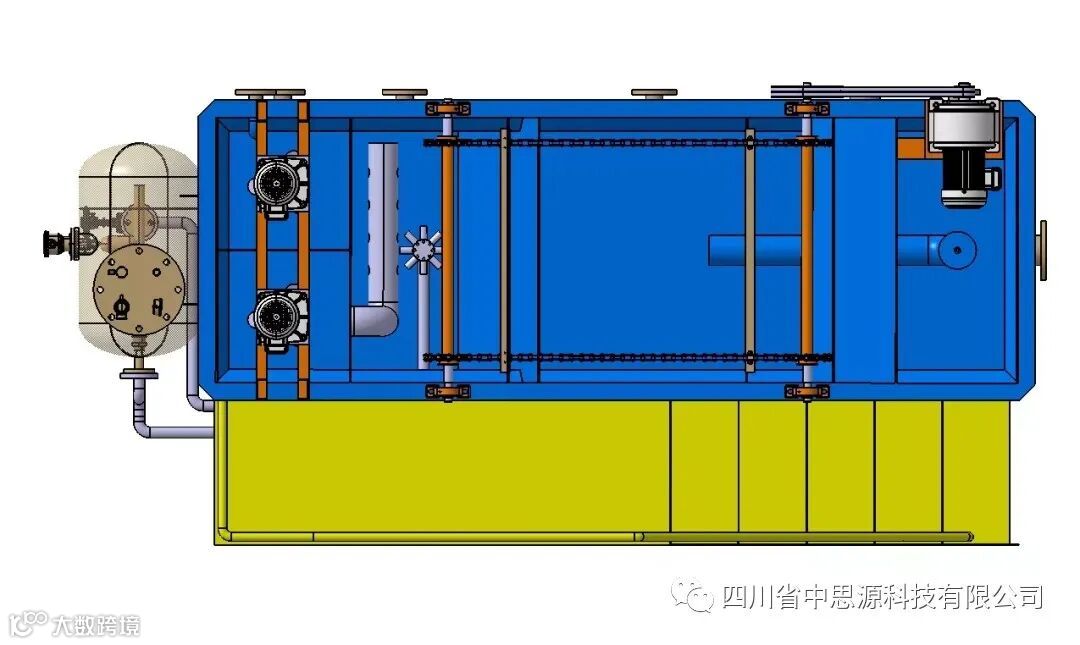 是一种先进气浮系统,成功地运用“浅池理论”和“零速”原理进行设计,集凝聚、气浮、撇渣、沉淀、刮泥于一体,是一种高效节能的水质净化设备。