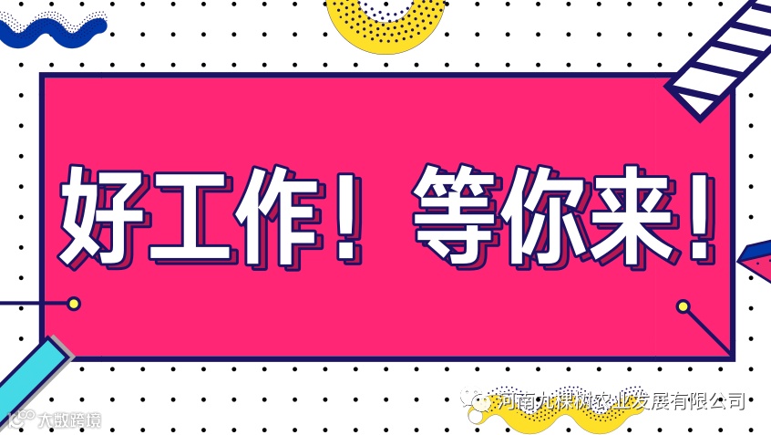 要知道,这个世上大部分人找工作都是从“不妨一试”到“非你不可”的,比如我们公司的销售岗位、不需要很专业的技能,只需要你有销售的热情和勇往直前的精神,不妨一试。网店运营岗位、熟悉网店运营操作,喜欢在办公室工作的小伙伴们,不妨一试。视频剪辑岗位、热爱拍摄剪辑,没有美颜不欢,喜欢拍段子的同志们,不妨一试。同样是工作,我们公司薪酬又高福利又好同事又nice发展前景又棒,能一样吗?有意向的小伙伴们赶紧联系我们吧4001001609随时等待接通。或者上智联招聘上搜索“河南九棵树农业发展有限公司”。多个职位等您选择哦!