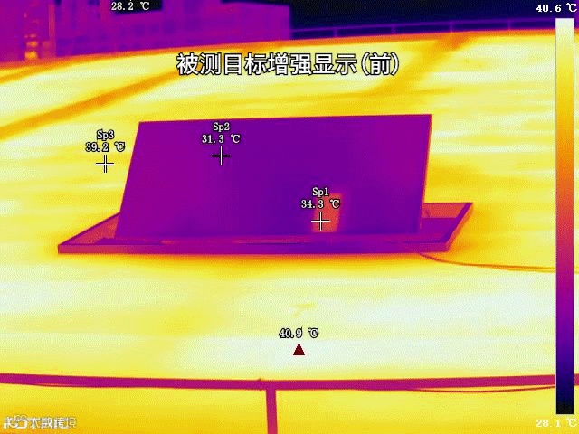 受光照影响,光伏组件的温度易与周边环境温度相似,或低于环境温度,导致红外热像仪拍出的热像画面上,光伏组件不够突出。