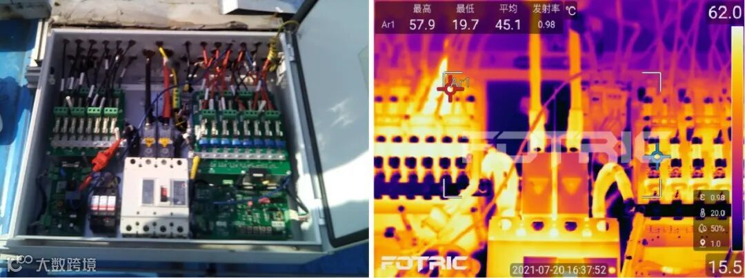 汇流箱也是红外热像仪检测的重要对象,准确测量接头的温度或部件的温度,及时发现潜在故障。